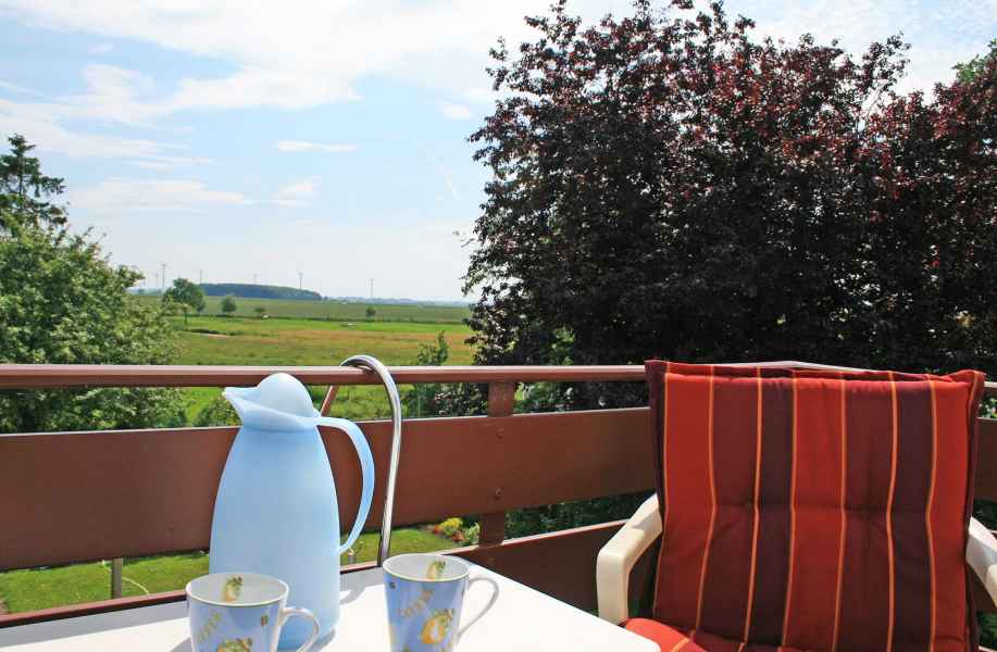 Genießen Sie den Ausblick nach Süden über weite Felder vom Balkon der gemütlichen Ferienwohnung. Sie sehen sogar die Fehmarnsundbrücke!